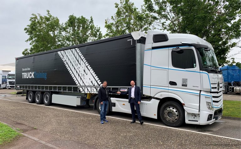 „Durch die Kombination von Sattelzugmaschine und Auflieger absolvieren die Fahrer die Trainings unter echten Praxisbedingungen“, erklärt Martin Gairing, Leiter des Mercedes-Benz Truck Trainings. „Wir freuen uns, mit diesen neuen Fahrzeugen unsere langjährige, konstruktive Partnerschaft mit Schmitz Cargobull erfolgreich weiter auszubauen“.
