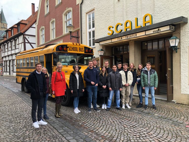 Gute Beispiele gab es genug: Mit dem amerikanischen Oldtimer-Bus ging es am Montag (14. März) bei einem „Start-up-Walk“ zu vier erfolgreichen Start-ups aus dem Kreis Warendorf: Der Gründer von enviado in Everswinkel startete mit seiner Idee im Garten-Schuppen seiner Mutter, bei hygi.de in Telgte wurde ein Blick ins riesige Lager geworfen und das Thema Gründung aus einer wirtschaftswissenschaftlichen Sicht betrachtet. Beim Scala-Filmtheater in Warendorf konnten sich die Schülerinnen und Schüler in gemütlicher Atmosphäre bei einem Mittagsessen austauschen und über die Nachfolge als Sonderform der Gründung informieren. Anschließend schauten sie sich beim Coworking Space Work LnB in Beckum an, wie und wo Start-ups gut arbeiten können. Die Jugendlichen lernten die unterschiedlichen Gründerinnen und Gründer und ihre Herangehensweisen kennen, stellten viele Fragen und schnupperten echte Gründerluft.