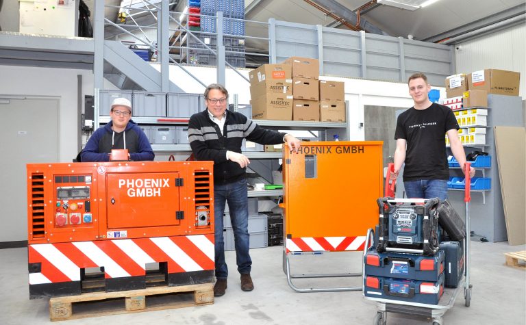 „Das ist ein intelligentes, tragfähiges Modell, um Bauvorhaben ohne große Überraschungen realisieren zu können“, erklärt Enno Fuchs, Geschäftsführer der Wirtschaftsförderung Münster GmbH (WFM), zumal Stellen für Fachkräfte am Standort Münster geschaffen und gesichert würden. „Ohne eine weitsichtige Planung, entsprechende Lagerbestände und stets verfügbare qualifizierte Beschäftigte laufen Projekte zeitlich und finanziell aus dem Ruder. Dieses wirtschaftliche Risiko kann sich kein Kaufmann leisten“, betont auch Phoenix-Geschäftsführer Grant im Beisein von Betriebsleiter Jan-Alexander Kortstiege (26) sowie Kundendienstleiter Luca Goddemeier (23).