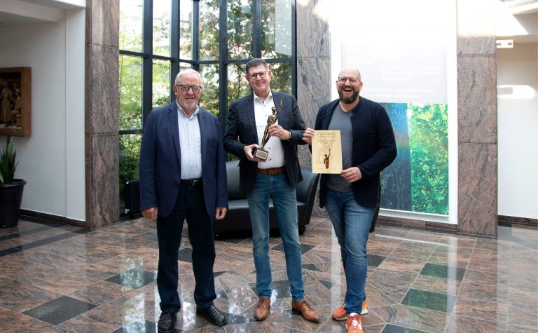 An 13 Unternehmen der sechs Wettbewerbsregionen Nordrhein-Westfalen, Rheinland-Pfalz/Saarland, Schleswig-Holstein/Hamburg, Sachsen-Anhalt und Mecklenburg-Vorpommern überreichten die Vorstände der Oskar-Patzelt-Stiftung, Dr. Helfried Schmidt und Petra Tröger, die begehrte „Preisträgerstatue“. Petra Tröger unterstrich: „In diesem Wettbewerb stehen die ganzheitliche Bewertung eines Unternehmens, die betriebswirtschaftlichen Ergebnisse insgesamt sowie die Nachhaltigkeit und Zukunftsorientierung, nicht nur für das Unternehmen, sondern für die Gesellschaft, im Vordergrund.“ Die MEISTERWERKE waren durch die Kreisgeschäftsstelle Paderborn-West/Hochsauerland/Waldeck-Frankenberg/Soest des Bundesverbands der mittelständischen Wirtschaft nominiert worden. In der Laudatio wurden u. a. die Fokussierung der MEISTERWERKE auf Nachhaltigkeit und Innovation, die Fachhandelsorientierung sowie die Verdienste um die Region betont. Geschäftsführer Ludger Schindler, der den Preis in Düsseldorf persönlich entgegennahm, erklärt: „Wir freuen uns sehr über diese Auszeichnung und die damit verbundene Wertschätzung unserer Bedeutung als mittelständisches Unternehmen für unsere Mitarbeiterinnen und Mitarbeiter und unser Umfeld. Der Preis ist eine Anerkennung für unsere gesamte Mannschaft, die die schwierigen Monate der Pandemie diszipliniert und mit viel Gemeinsinn durchgestanden hat. Darauf können wir alle gemeinsam stolz sein!“