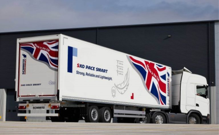 Schmitz Cargobull, Europas führender Hersteller von Sattelaufliegern, hat sein neues Produkt aus dem britischen Werk vorgestellt: den Sattelkoffer S.KO PACE SMART. Der vollständig modulare Trockenfracht-Sattelauflieger wurde für britische und irische Transportunternehmen entwickelt und ist entsprechend der Kundenanforderungen ausgestattet.