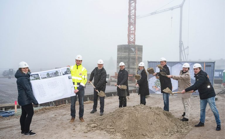 Dissen. „Wir freuen uns, dass hier auf dem Gelände des ehemaligen Klinikums ein buntes Quartier entstehen wird und die brach liegende Fläche so sinnvoll und klimaschonend gestaltet wird. Auch durch das Engagement der DFS Immobilien entwickelt sich das Quartier mehr und mehr zu einem kleinen grünen Schmuckstück in Dissen“, sagte Dissens Bürgermeister Eugen Görlitz zum Baubeginn an der Bahnhofstraße in Dissen. Die DFS Immobilien GmbH & Co. KG, ein Tochterunternehmen der Dieter Fuchs Stiftung, errichtet dort zwei mit Gründächern versehene Mehrfamilienhäuser im energetisch hochwertigen KFW 40 plus Standard. Entwickelt wurde das Baugebiet von der oleg Osnabrücker Land – Entwicklungsgesellschaft mbH gemeinsam mit der Stadt Dissen.