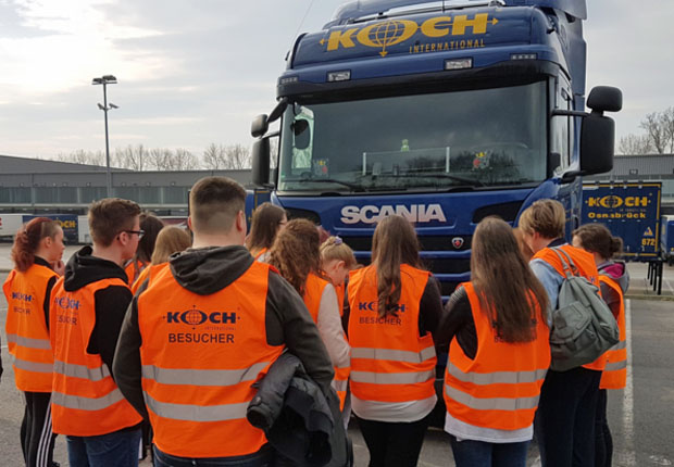 Osnabrück. Schüler der Möser Realschule in Osnabrück-Westerberg hatten im Rahmen ihrer Schulkooperation mit Koch International und in Zusammenarbeit mit der Nachwuchsinitiative „Hallo Zukunft!“ am Mittwoch, 11. April 2018, die Gelegenheit, hinter die Kulissen des Logistikdienstleisters zu blicken.